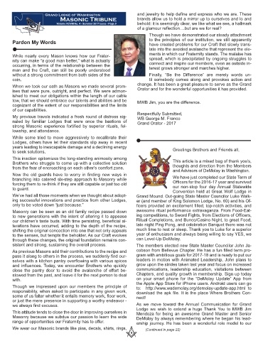 We wear our Masonic brands like pins, decals, shirts, rings, (Continued in page 22)