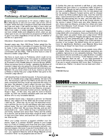 Gr and Lodg e of W ashingt on 3) Earlier this year we received a call from a Lady whose