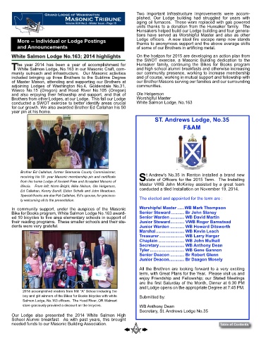 White Salmon Lodge No.163; 2014 highlights On the horizon for 2015 are developing an action plan from