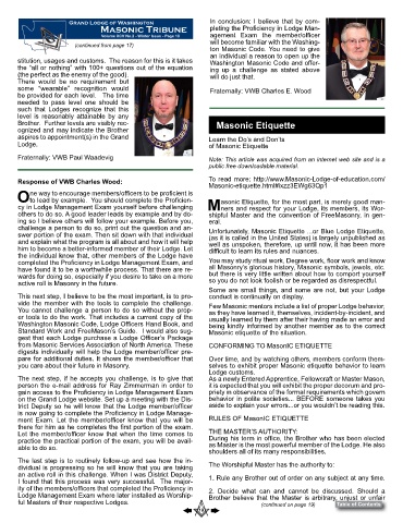 Standard Work and FreeMason’s Guide. I would also sug- Masonic etiquette of the situation.