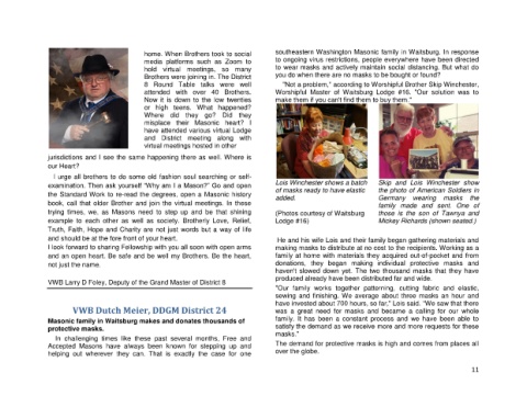 VWB Dutch Meier, DDGM District 24 was a great need for masks and became a calling for our whole