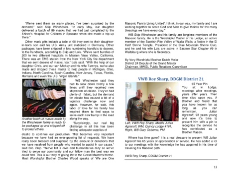 that we sent dozens of masks, too," Lois said. "With the help of our District 24 Deputy of the Grand Master