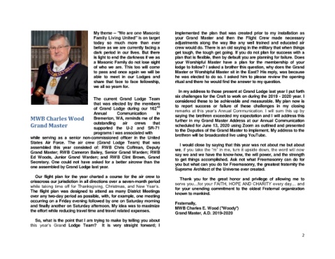 of Grand Lodge during our 162 remarks at this year’s Annual Communication. I will sum this up by
