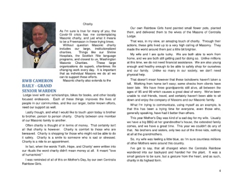 RWB CAMERON Masonic charity also extends to the That doesn't mean however that these lockdowns haven't taken a