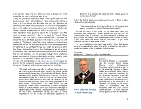discussions around the appropriate use of Zoom and like platforms. For now, my Brothers, stay safe, stay healthy. I fear that we are