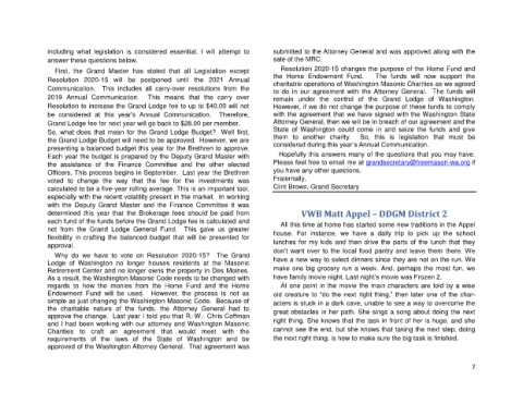 2019 Annual Communication. This means that the carry over remain under the control of the Grand Lodge of Washington.