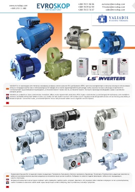 VALIADIS S.A. ги произведува сите типови на: монофазни, трофазни, високо напонски 6kV, двобрзински, АТЕКС, тропски и електромотори со магнетна кочница во сите монтажни