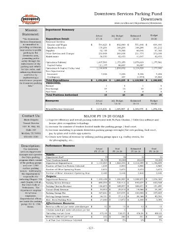 of the parking garage Department Expenditures $ 1,153,204 $ 1,263,235 $ 1,118,599 $ 1,196,699