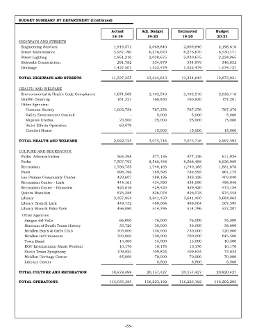 BUDGET SUMMARY BY DEPARTMENT (Continued)
