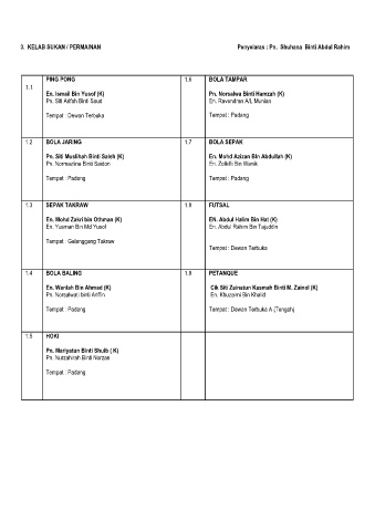 3. KELAB SUKAN / PERMAINAN Penyelaras : Pn. Shuhana Binti Abdul Rahim