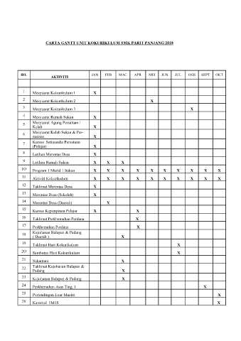 CARTA GANTT UNIT KOKURIKULUM SMK PARIT PANJANG 2018