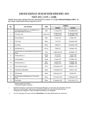 HARI-HARI KELEPASAN AM DALAM NEGERI KEDAH DARUL AMAN