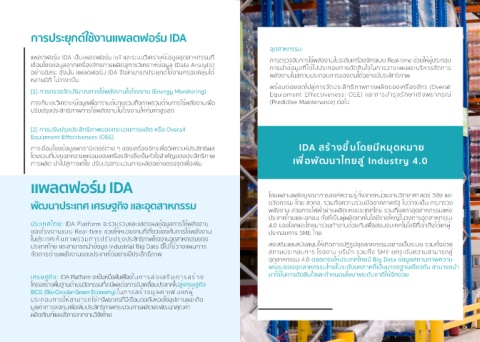 อย่างอิสระ ดังนั้น แพลตฟอร์ม IDA จึงสามารถประยุกต์ใช้งานครอบคลุมได้ พลังงานในสถานประกอบการของตนได้อย่างมีประสิทธิภาพ