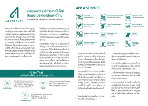 AI for Thai ให้บริการ API ด้านปัญญา โดยให้บริการฟรีแก่กลุ่มนักพัฒนาและผู้