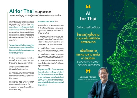 ปพ.ศ. 2561 น่นคือ “AI for Thai” ผูอํานวยการกลุมวิจัยปญญาประดิษฐ