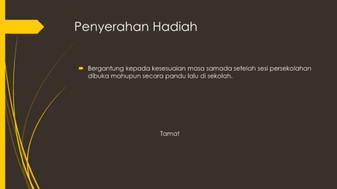 Penyerahan Hadiah Bergantung kepada kesesuaian masa samada setelah sesi persekolahan dibuka mahupun secara pandu lalu di sekolah. Tamat