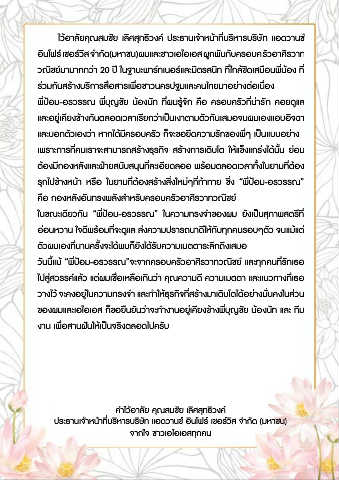อินโฟร์ เซอร์วิส จ�ากัด(มหาชน)ผมและชาวเอไอเอส ผูกพันกับครอบครัวอาศิรวาท