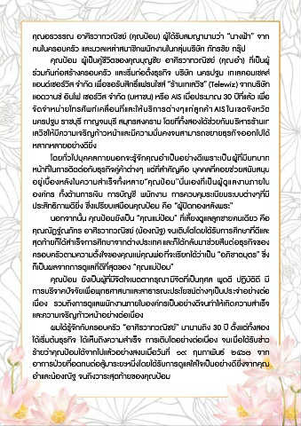 ผมได้รู้จักกับครอบครัว “อาศิรวาทวณิชย์” มานานถึง 30 ปี ตั้งแต่ทั้งสอง