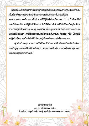 สุดท้ายนี้ ขอคุณงามความดีที่พี่ป้อมได้ท�ามา จงเป็นดั่งแสงเทียนประทีปน�าพา