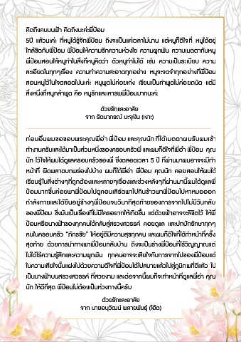 สอนหนูไว้ในใจตลอดไปนะค่ะ หนูพูดไม่ค่อยเก่ง เขียนเป็นค�าพูดไม่ค่อยถนัด แต่มี
