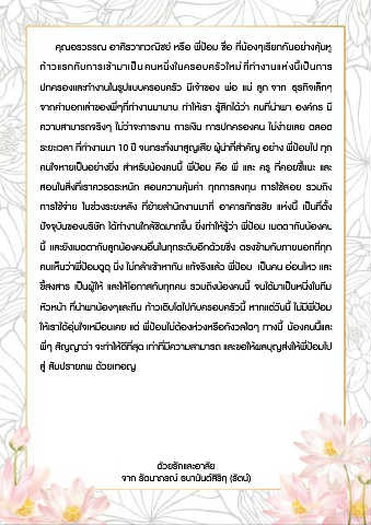 พี่ๆ สัญญาว่า จะท�าให้ดีที่สุด เท่าที่มีความสามารถ และขอให้ผลบุญส่งให้พี่ป้อมไป