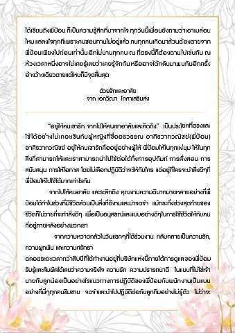 ชีวิตก็ไม่วายที่จะท�าสิ่งดีๆ เพื่อเป็นอนุสรณ์และแบบอย่างดีๆในการใช้ชีวิตให้กับคน