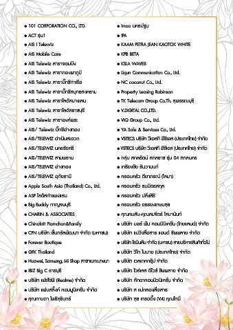 • บริษัท เฟซโซ่พี (Realme) จ�ากัด • บริษัท ศักดาคอมมิวนิเคชั่น จ�ากัด