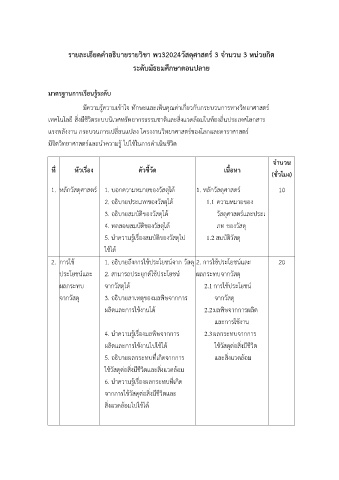 รายละเอียดคำอธิบายรายวิชา พว32024วัสดุศาสตร์ 3 จำนวน 3 หน่วยกิต