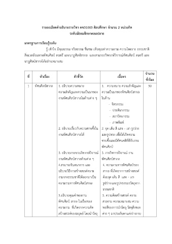 รายละเอียดคำอธิบายรายวิชา ทช31003 ศิลปศึกษา จำนวน 2 หน่วยกิต