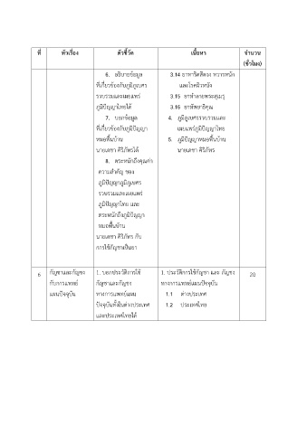 ที่ หัวเรื่อง ตัวชี้วด เนื้อหา จำนวน