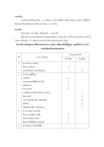 โครงสร้างหลักสูตรการศึกษานอกระบบ ระดับการศึกษาขั้นพื้นฐาน พทธศักราช 2551