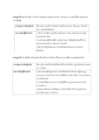 มาตรฐานที่ 5.2 มีความรู้ ความเข้าใจ เห็นคณค่า และสืบทอดศาสนา วัฒนธรรม ประเพณี เพื่อการอยู่ร่วมกัน