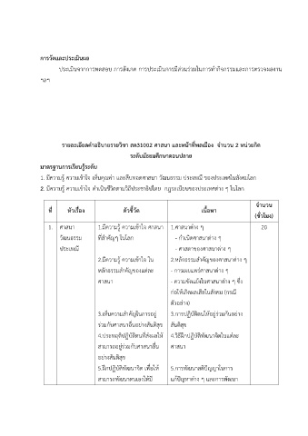 1. ศาสนา 1.มีความรู้ ความเข้าใจ ศาสนา 1.ศาสนาตาง ๆ 20