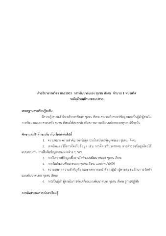 คำอธิบายรายวิชา สค31003 การพัฒนาตนเอง ชุมชน สังคม จำนวน 1 หน่วยกิต