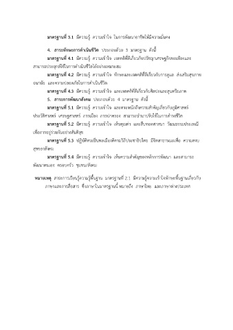 5. สาระการพัฒนาสังคม ประกอบด้วย 4 มาตรฐาน ดังนี้