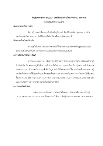 คำอธิบายรายวิชา สค32034 ประวัตศาสตรชาติไทย จำนวน 3 หน่วยกิต