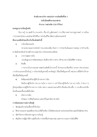 คำอธิบายรายวิชา สค32029 การเงินเพื่อชีวิต 3