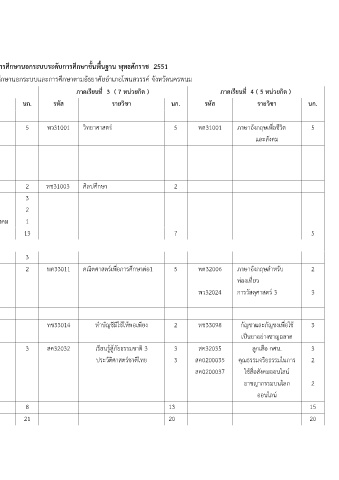 ที่ สาระการเรียนรู้ ภาคเรียนที่ 1 ( 19 หน่วยกิต) ภาคเรียนที่ 2 ( 13 หน่วยกิต) ภาคเรียนที่ 3 ( 7 หน่วยกิต ) ภาคเรียนที่ 4 ( 5 หน่วยกิต )