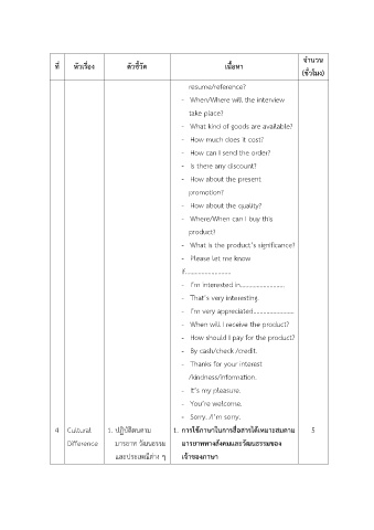 4 Cultural 1. ปฏิบัติตนตาม 1. การใช้ภาษาในการสื่อสารได้เหมาะสมตาม 5