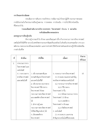 รายละเอียดคำอธิบายรายวิชา พว31001 วิทยาศาสตร จำนวน 5 หน่วยกิต