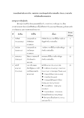รายละเอียดคำอธิบายรายวชา พต32006 ภาษาอังกฤษสำหรับการท่องเที่ยว จำนวน 2 หน่วยกิต