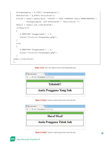 Rajah 3.2.54(a) Paparan output bagi laman web Sah.php
