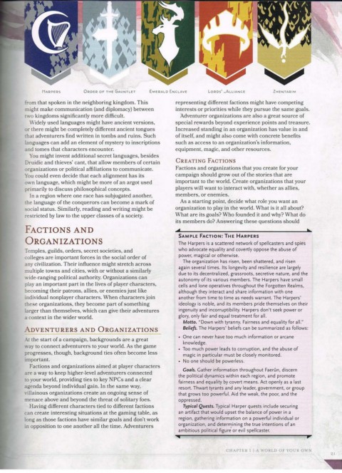 ORGANIZATIONS The Harpers is a scattered network of spellcasters and spies