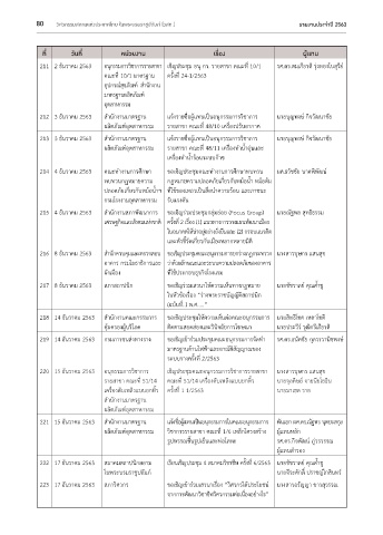 216 8 ธันวาคม 2563 ส�านักควบคุมและตรวจสอบ ขอเชิญประชุมคณะอนุกรรมการยกร่างกฎกระทรวง นางสาวบุษกร แสนสุข