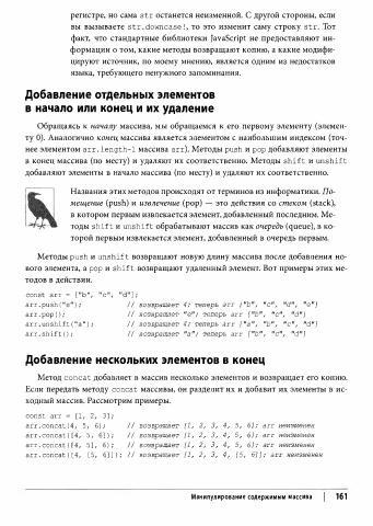 arr . concat ( 4 , 5 , 6 ) ; 1 1 возвращает [1 , 2, 3 , 4 , 5 , 6] ; arr неизменен