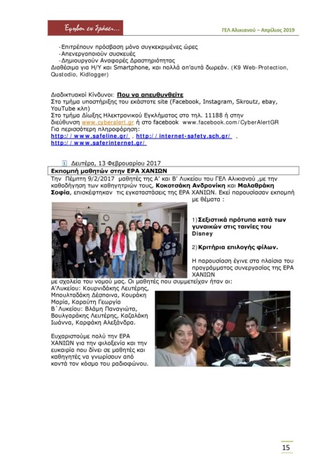 Την Πέμπτη 9/2/2017 μαθητές της Α’ και Β’ Λυκείου του ΓΕΛ Αλικιανού ,με την