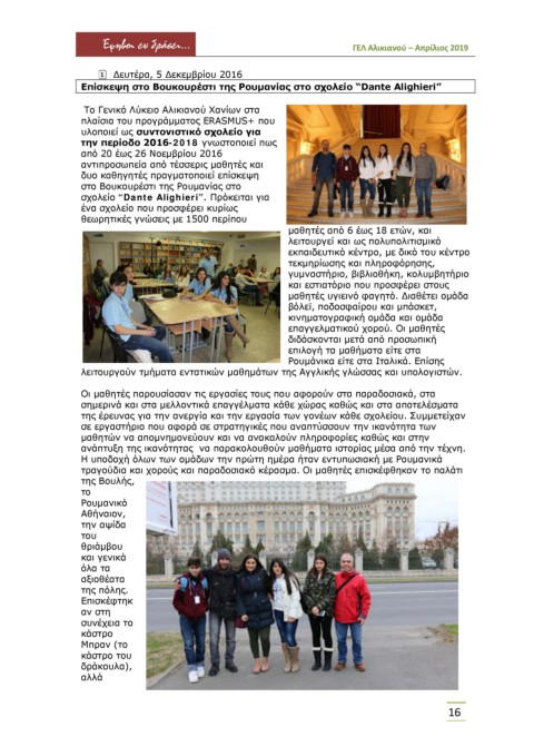 Επίσκεψη στο Βουκουρέστι της Ρουμανίας στο σχολείο “Dante Alighieri”