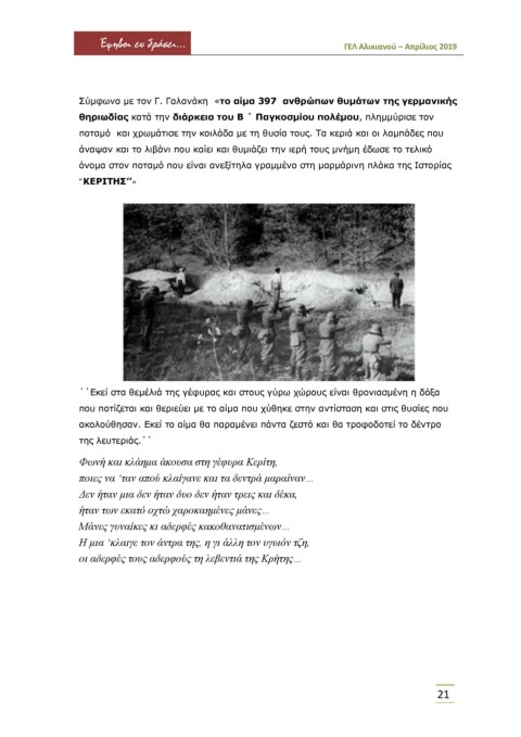 Σύμφωνα με τον Γ. Γαλανάκη «το αίμα 397 ανθρώπων θυμάτων της γερμανικής