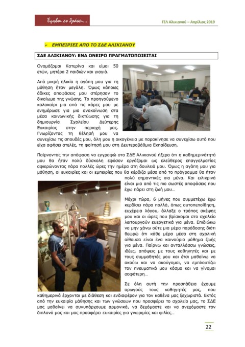 ΕΜΠΕΙΡΙΕΣ ΑΠΟ ΤΟ ΣΔΕ ΑΛΙΚΙΑΝΟΥ