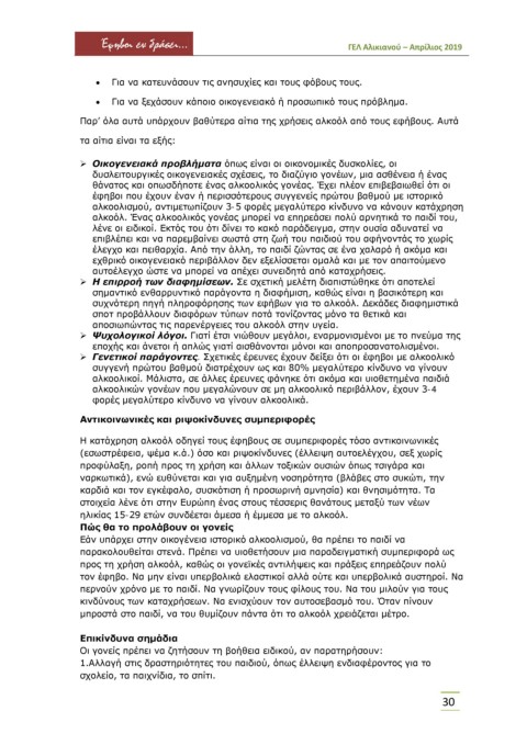κινδύνους των καταχρήσεων. Να ενισχύουν τον αυτοσεβασμό του. Όταν πίνουν